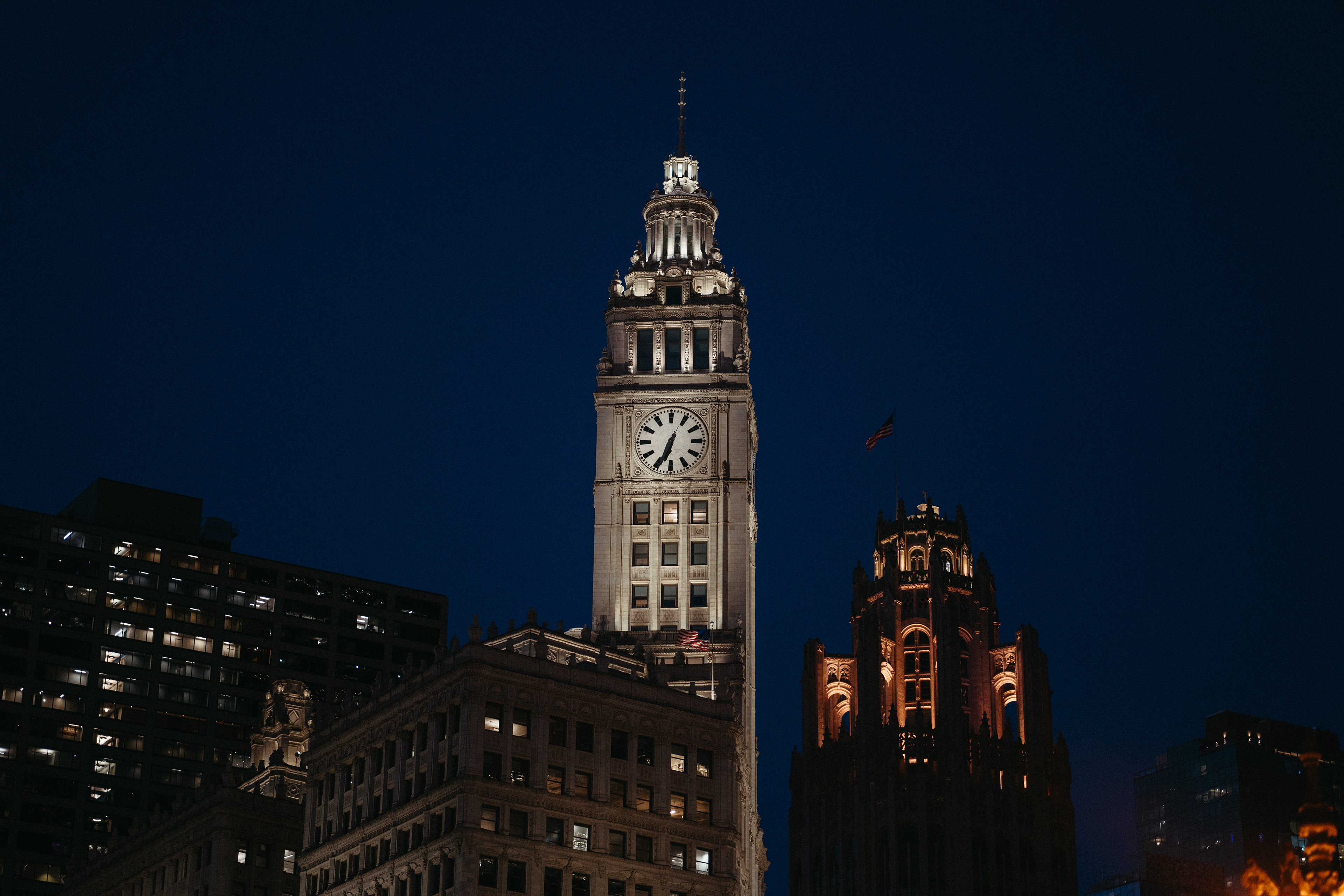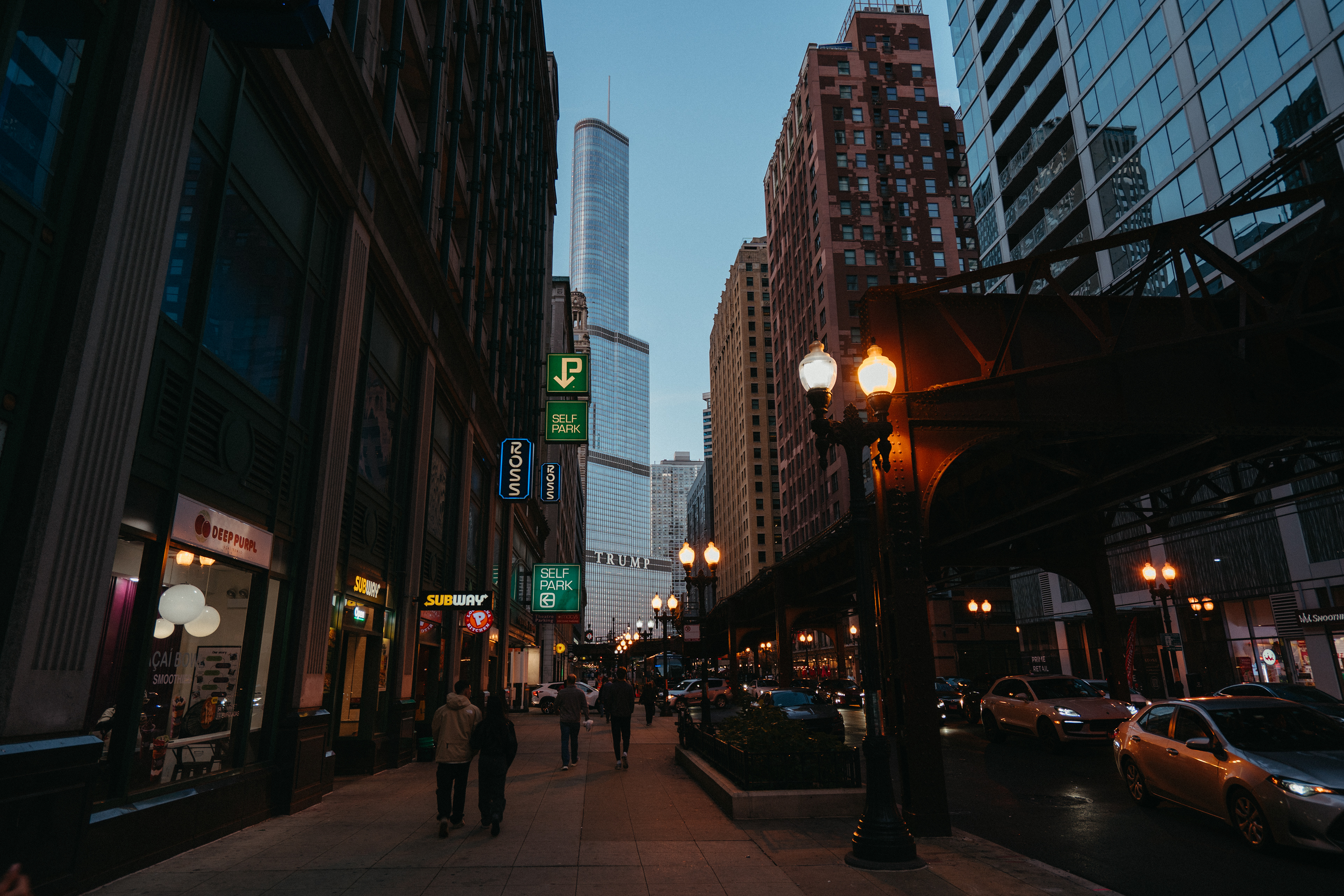 To walk these streets is to inhabit a choreography of elongated shadows and hard lines slicing through the sky, as if gravity were negotiable. The river articulates the city. The elevated train is a statement. Night light stages the city.